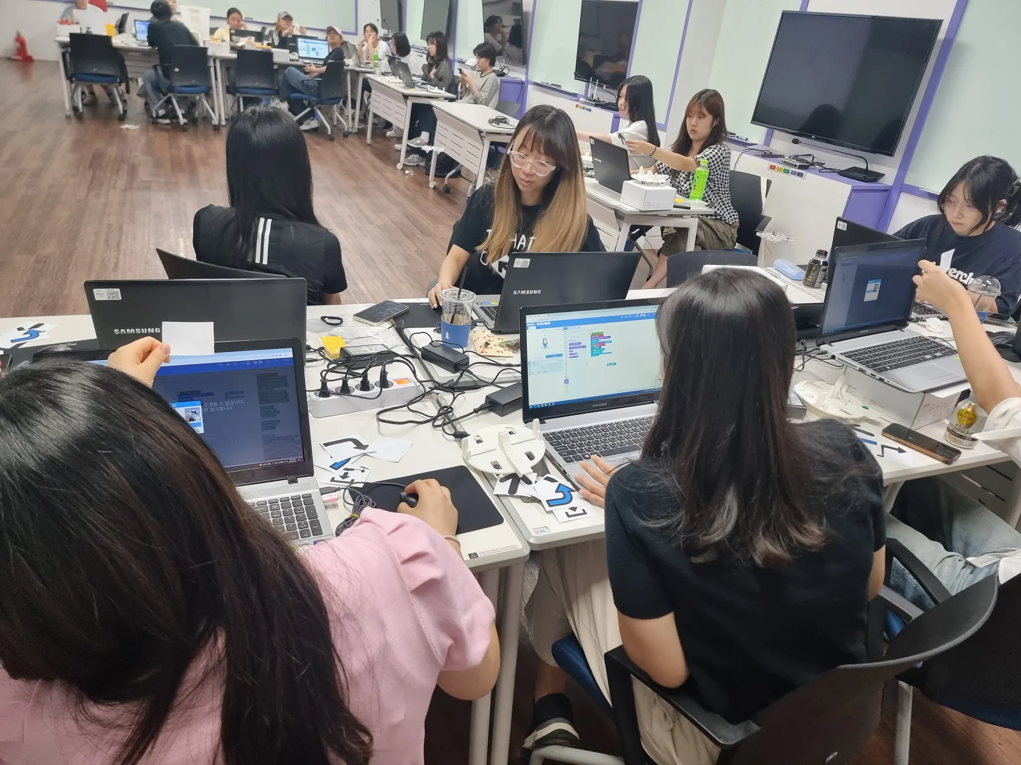 - 장애물 피하기 미션, 인공지능 모듈 체험 등을 진행하여 블록코딩을 활용한 창의적인 실습 교육을 진행함
