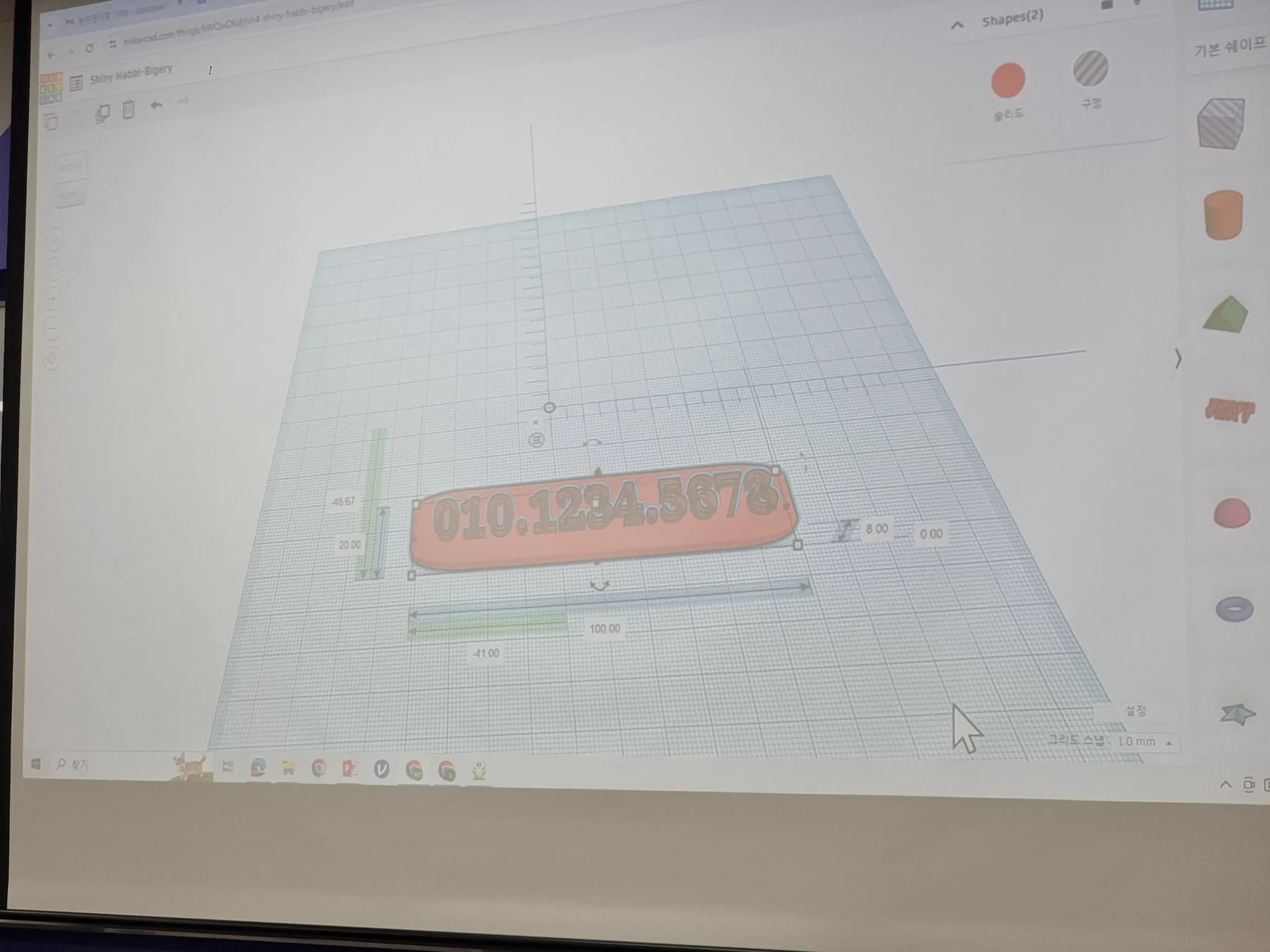 3D모델링 실습: 주차 번호판 모델링, 컬링 프레임 모델링 및 3D프린팅 준비