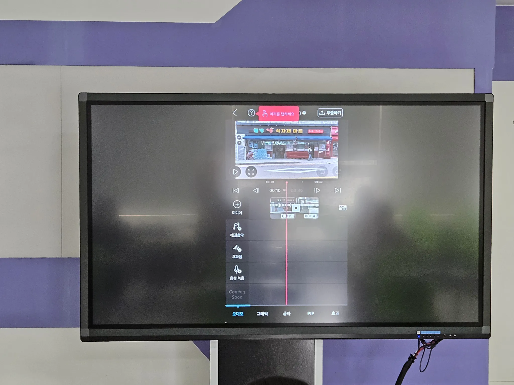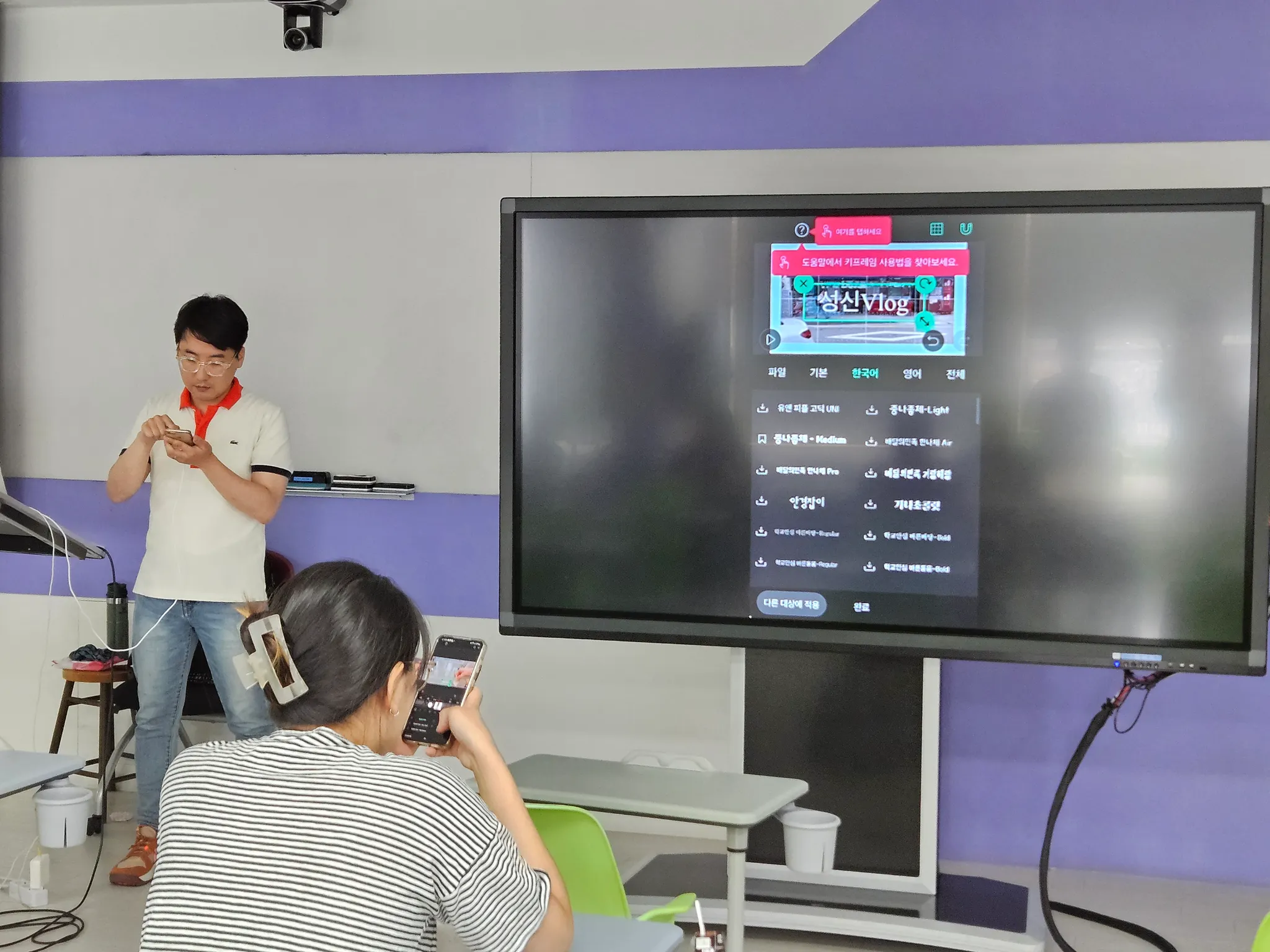 스마트폰 편집 어플을 활용하여 개별로 촬영한 영상을 편집해보고, 다양한 영상 효과(자막 삽입, 배경음악 삽입, 내레이션, 화면 전환 효과) 등을 집중적으로 학습함