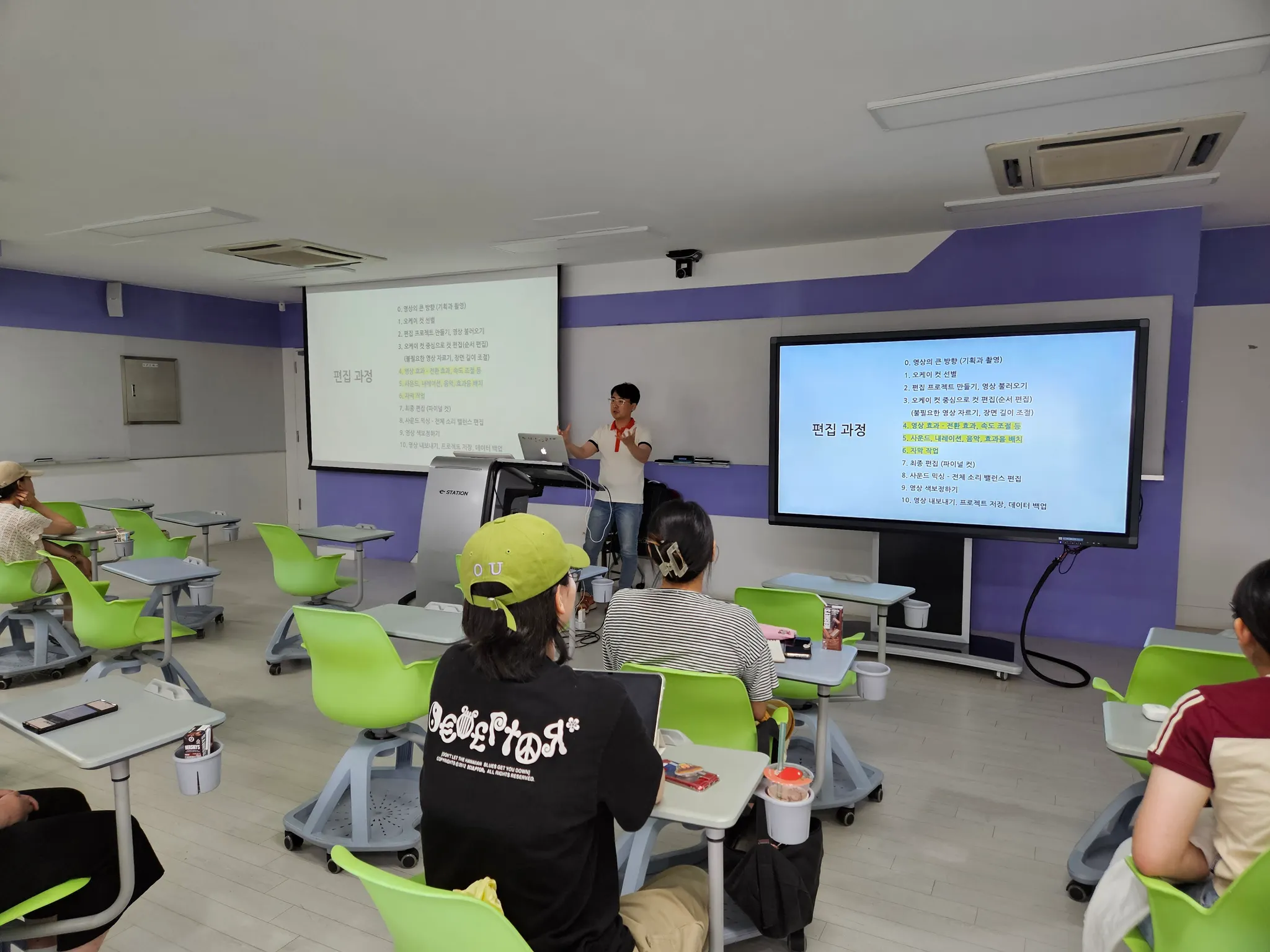 정해진 수업 시수 안에 영상 제작에 대한 공부를 알차게 할 수 있어서 좋았습니다. 강사님 정말 친절하시고 유익한 시간 만들어주셔서 감사합니다