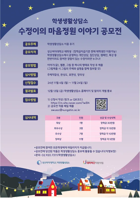 주제 및 분야: 학생생활상담소 이용 후기 (이야기(글), 웹툰, 그림 중 하나의 형태로 작성 후 제출)