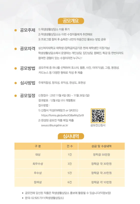 주제 및 분야: 학생생활상담소 이용 후기, 프로그램 참여 후 습득한 나만의 마음건강 돌보는 방법 공유