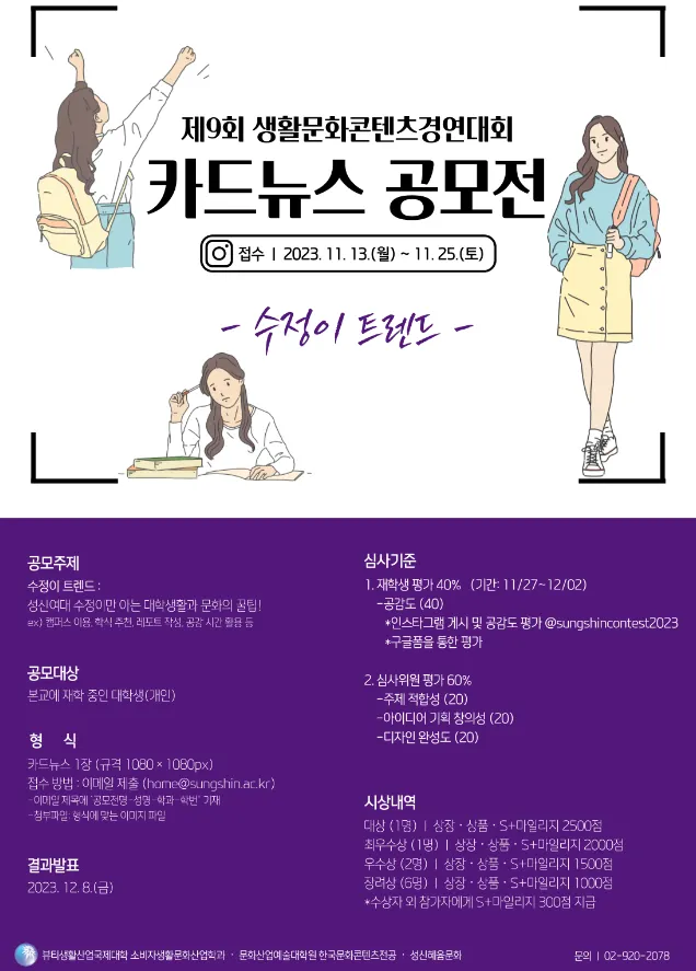 주제 및 분야: 수정이 트렌드 - 성신여대 수정이만 아는 대학생활과 문화의 꿀팁